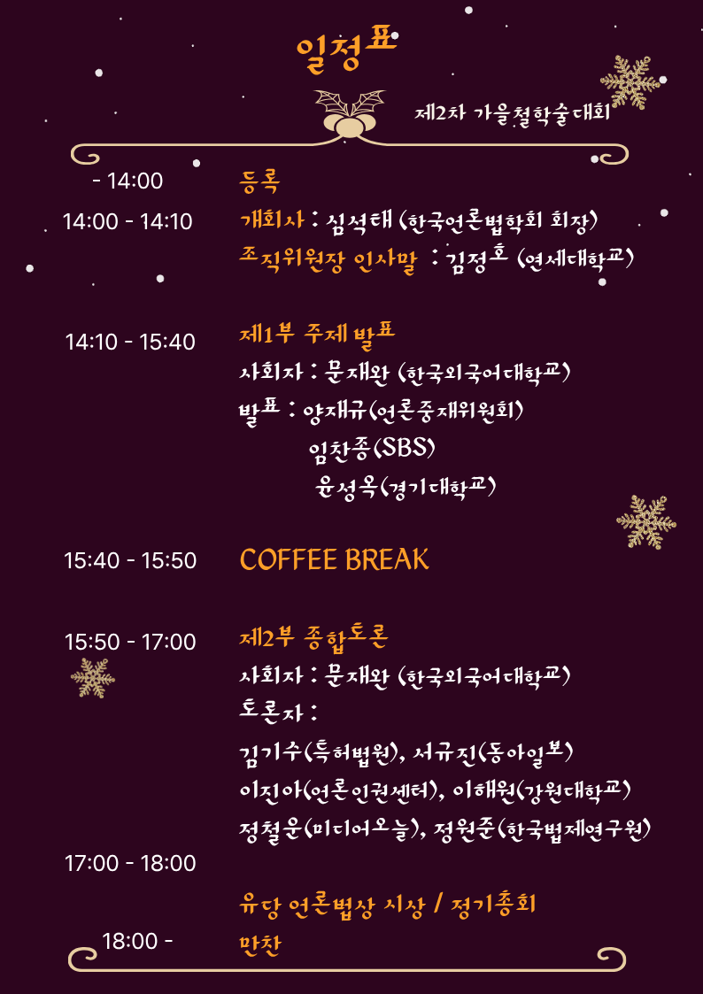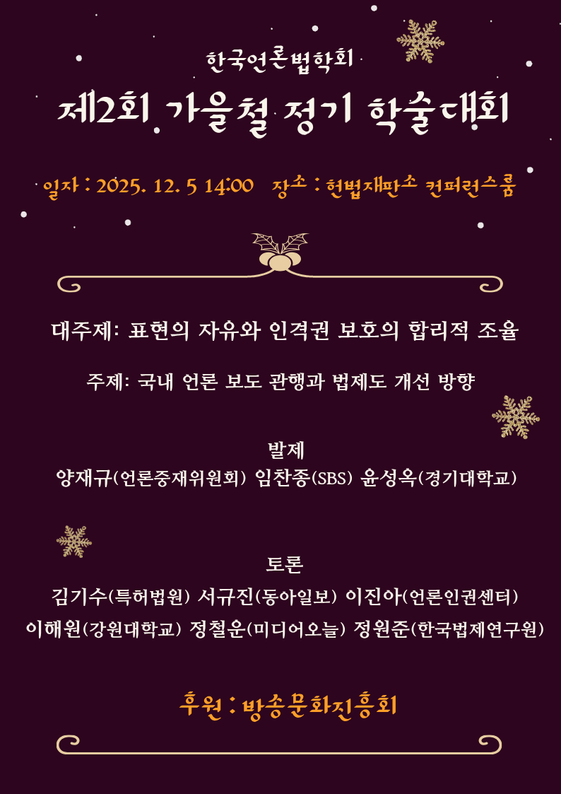 [공지] 한국언론법학회 제2차 가을철 학술세미나 개최 (12/5)