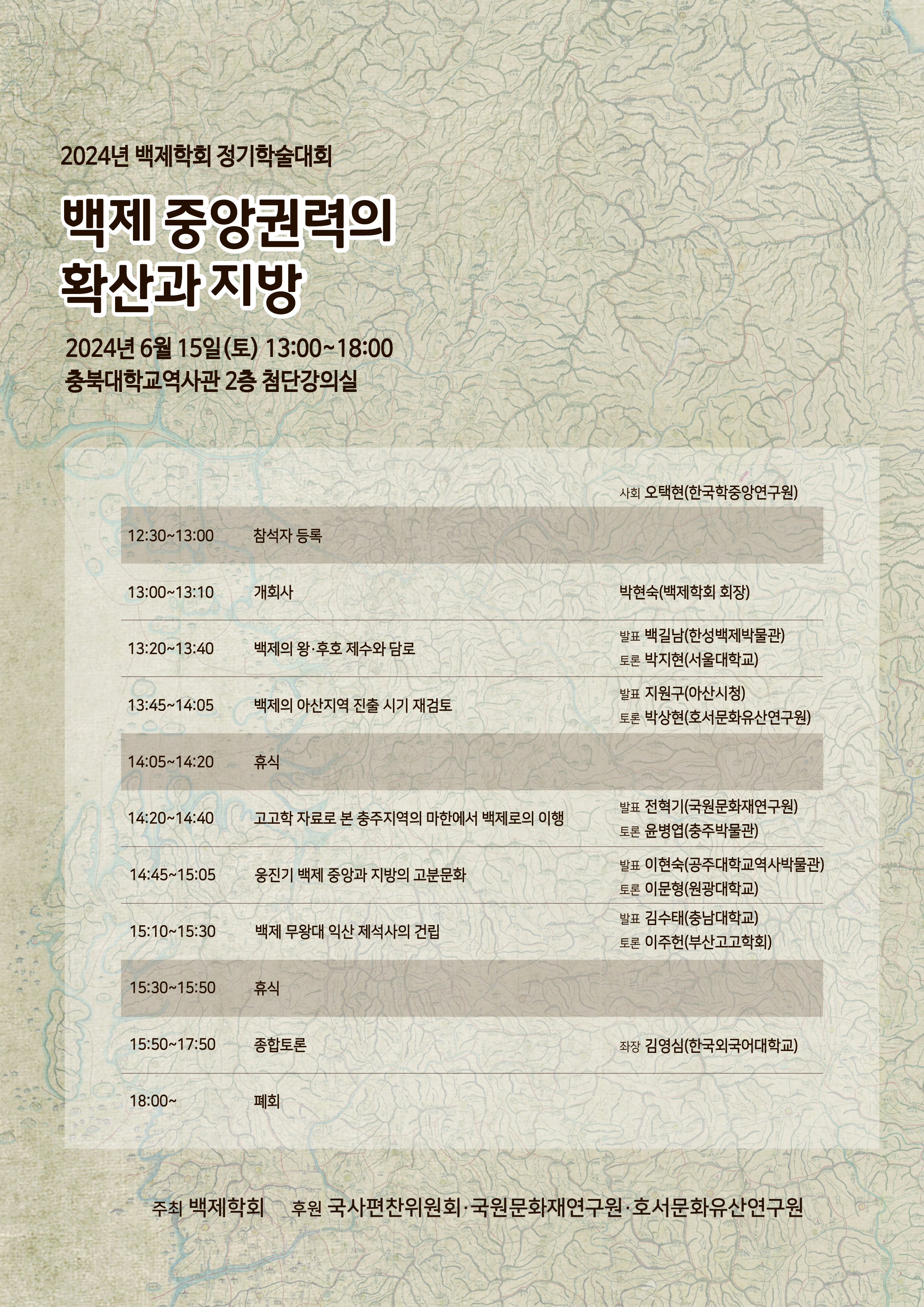 2024년 백제학회 정기학술대회 <백제 중앙권력의 확산과 지방> 개최 안내