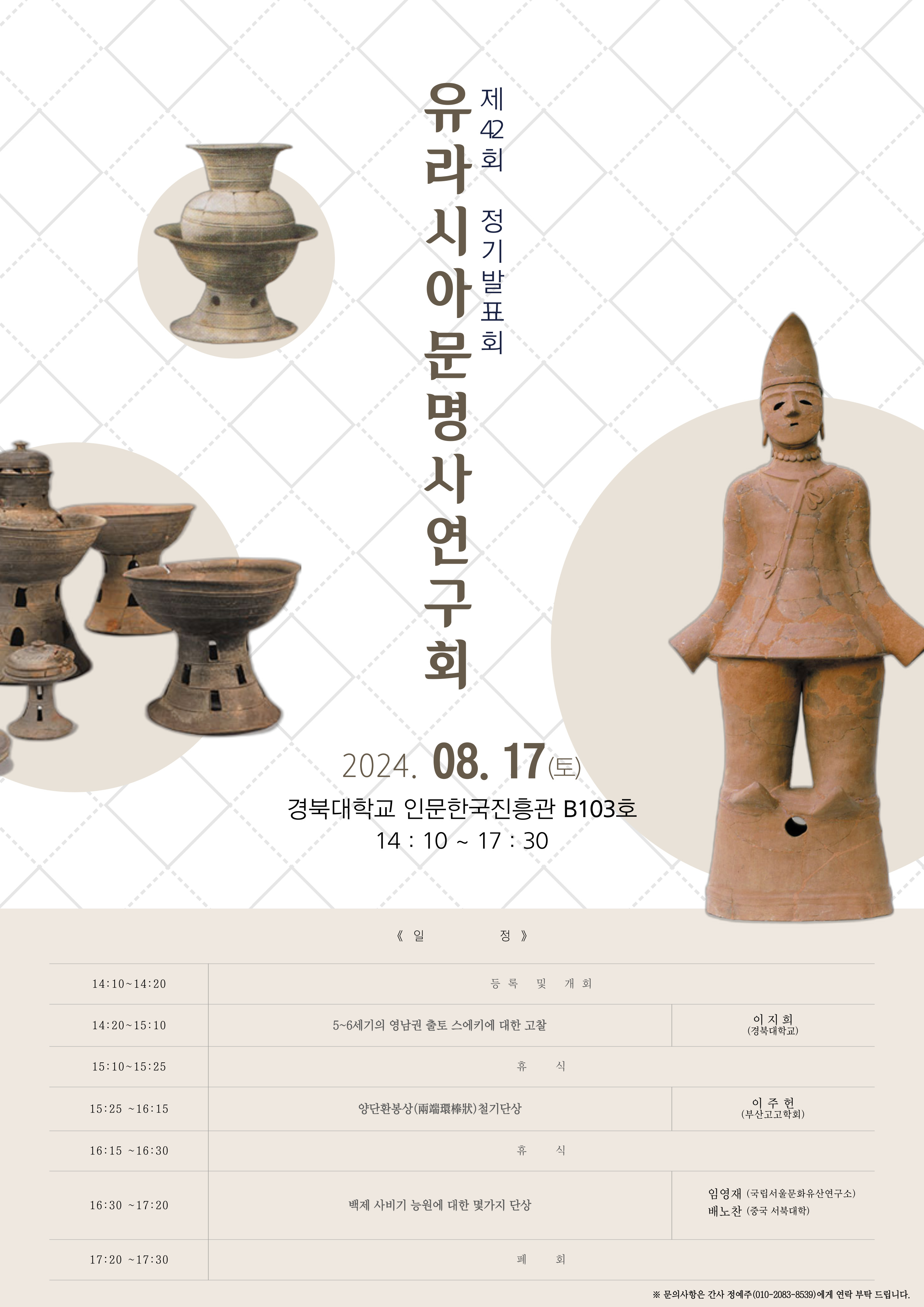 2024년 8월 17일 토요일, 유라시아문명사연구회 제 42회 정기발표회가 진행될 예정입니다.