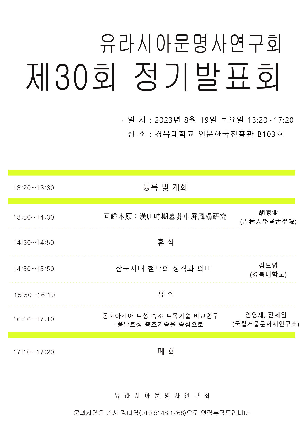 2023년 8월 19일 토요일, 유라시아문명사연구회 제30회 정기발표회가 진행될 예정입니다.