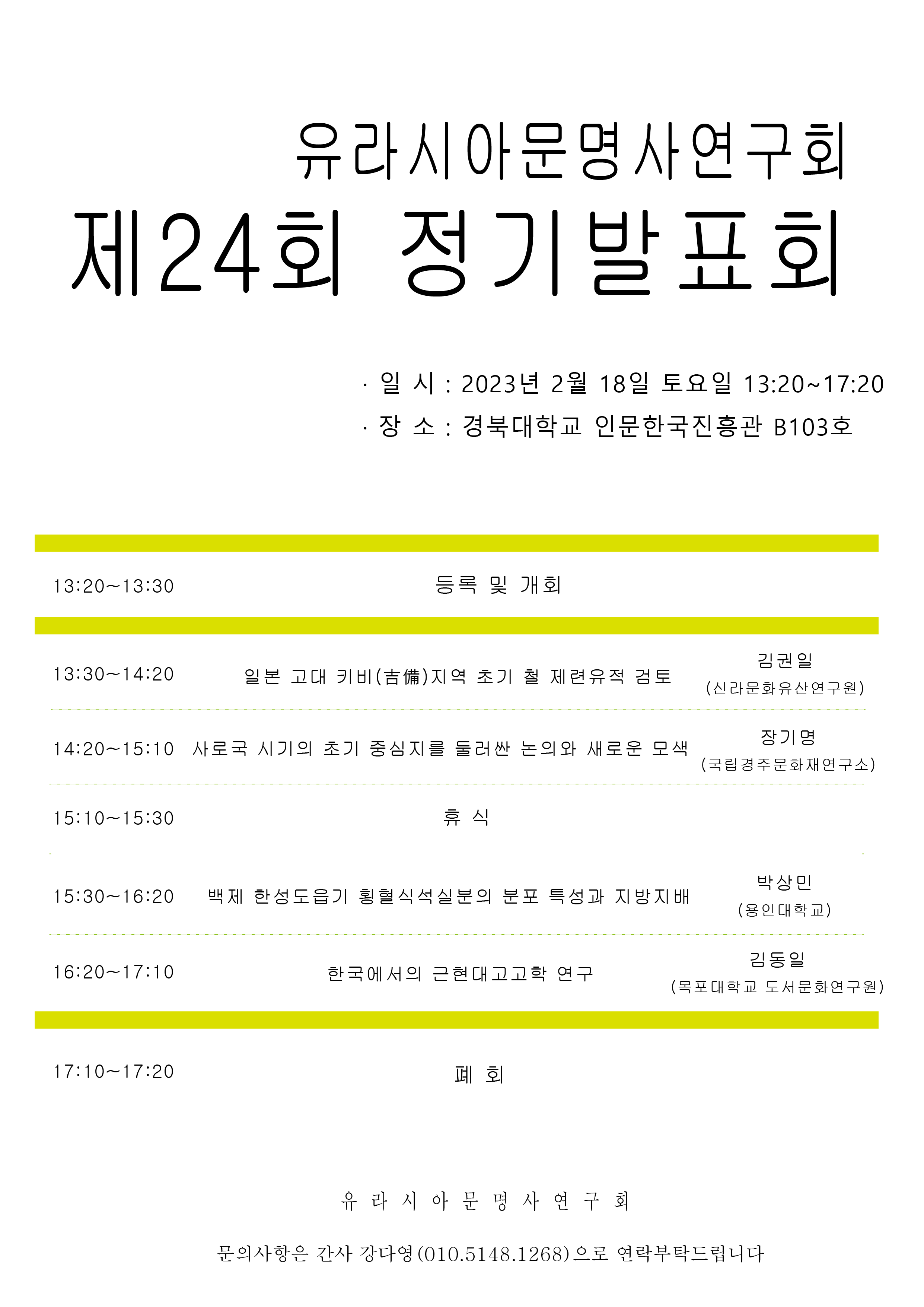 2023년 2월 18일 토요일, 유라시아문명사연구회 제24회 정기발표회가 진행될 예정입니다.