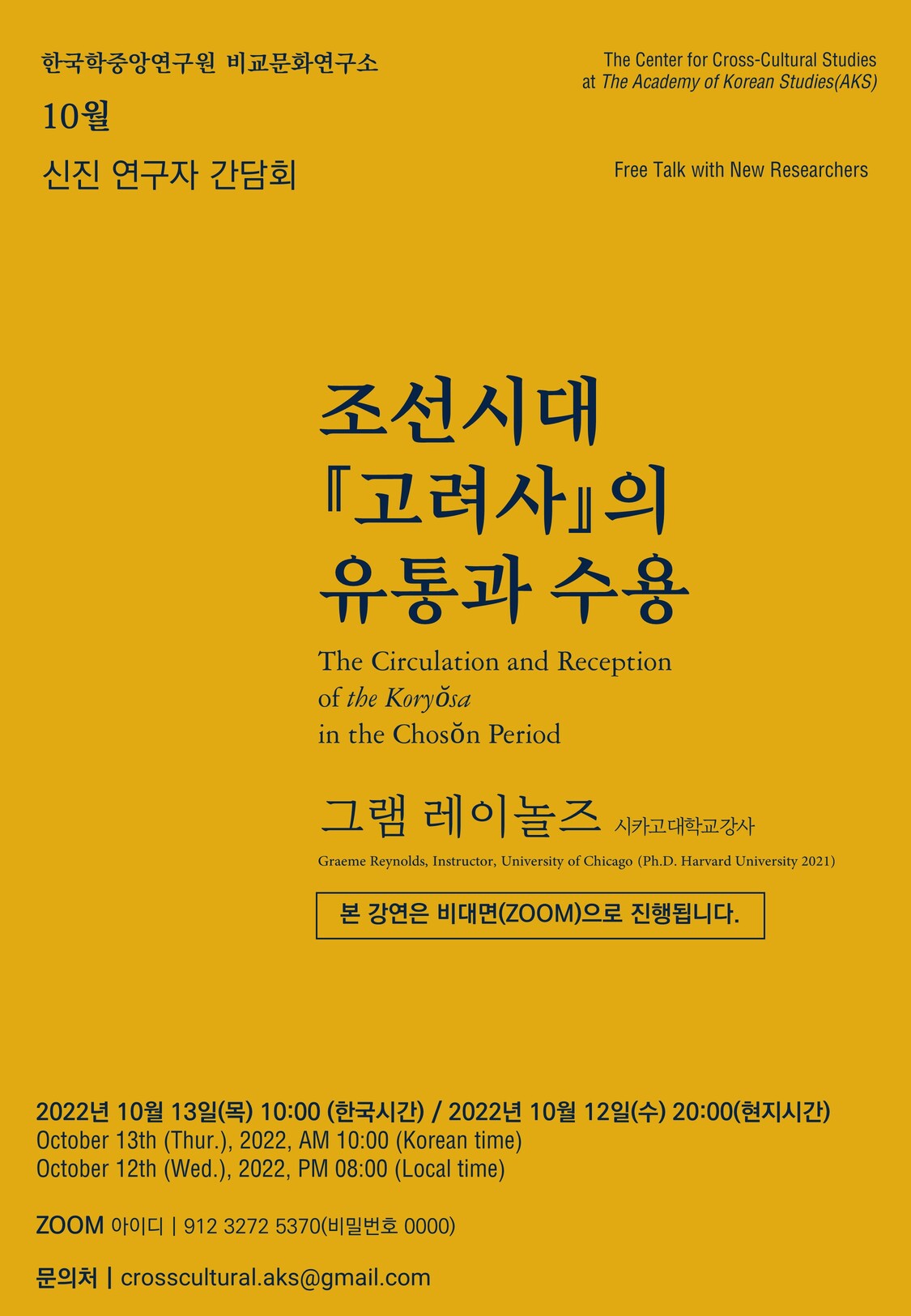 강연일시: 10월 13일(목) 오전 10시 (현지시간 10월 12일 수, 저녁 8시)