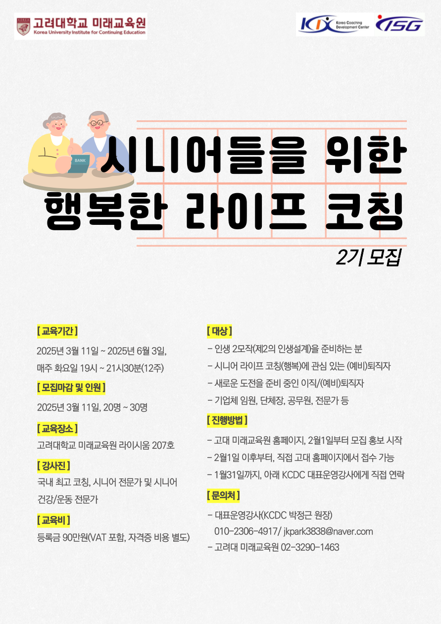 【 지역사회 시니어들을 위한 행복한 라이프 코칭 2기 모집】