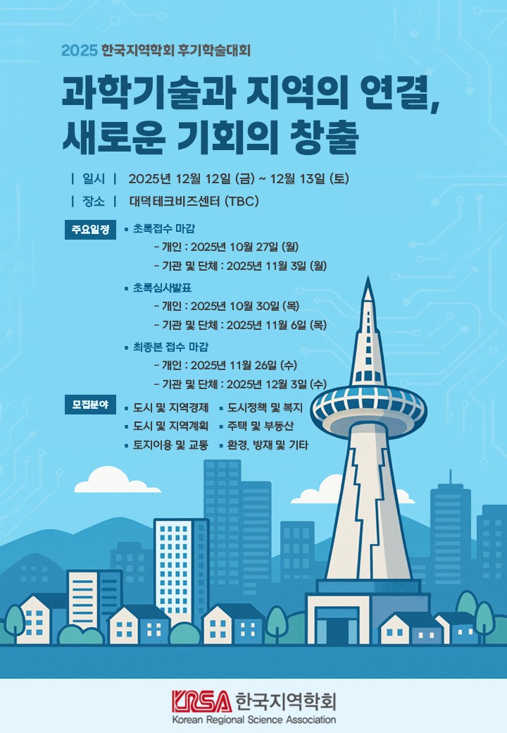 2025 한국지역학회 후기 학술대회 논문모집 안내
